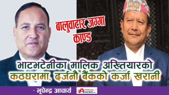 देशका महत्वपूर्ण व्यक्तित्वहरुको निवाससंगै जोडिएको बालुवाटारको २९९ रोपनी जग्गा व्यक्तिको नाममा गरि विक्री वितरण गरेको उजुरीका आधारमा कुमारी बैंकका पूर्व सञ्चालक एवं पूर्व एमाले नेता शोभाकान्त ढकाल, भाटभटेनी सुपरमार्केटका प्रबन्ध निर्देशकद्वय मीन बहादुर र छोरा कल्याण गुरुङ अख्तियारको कठघरामा पुगेका छन् ।