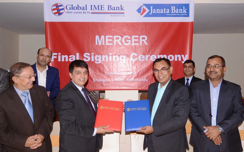ग्लोबल आइएमई बैंक र जनता बैंक नेपालबीच मर्जरसम्बन्धी अन्तिम सम्झौतापत्रमा शुक्रबार हस्ताक्षर भएको छ । काठमाडौंमा आज आयोजित एक समारोहबीच दुई बैंकका अध्यक्षहरुले अन्तिम सम्झौतापत्रमा हस्ताक्षर गरे ।