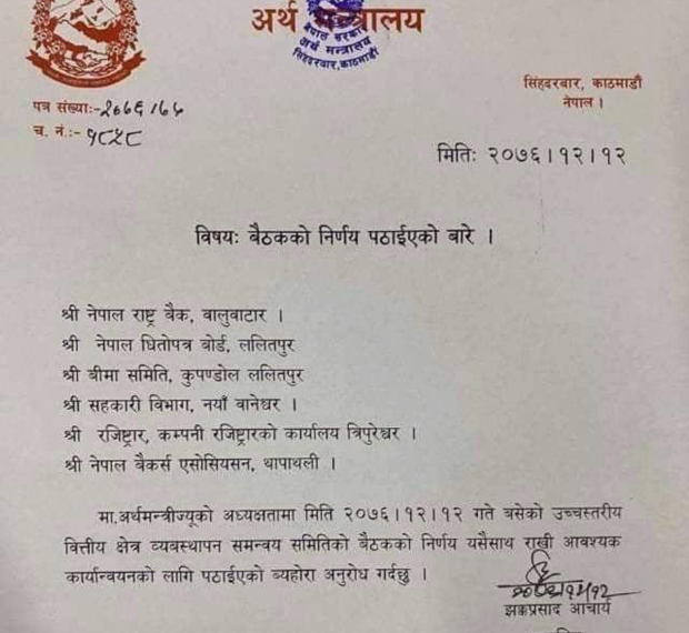 जसअनुसार ैंकिङ तथा गैर बैंकिङ वित्तीय संस्थाबाट लिइएको ऋणको भाका सर्ने भएको हो । साथै साँवा तथा ब्याज चैत मसान्तसम्म तिर्नु नपर्ने भएको हो ।