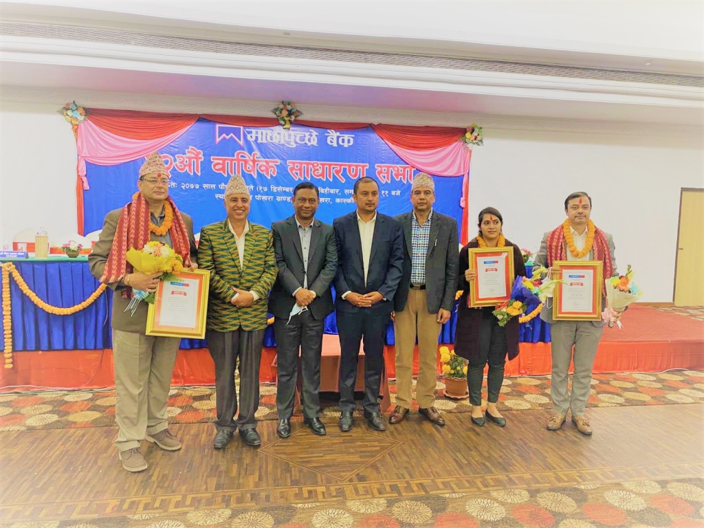 साधारणसभाबाट बैंकले सर्वसाधारण शेयर धनी समुहको तर्फबाट जय मुकुन्द खनाल, विश्व प्रकाश गौतम तथा सृजना कार्की भट्टराईलाई आगामी ४ वर्षको लागि संचालक समितिको सदस्य पदमा निर्विरोध निर्वाचित गरेको छ । साथै बैंकले आजैबाट आफ्ना शेयरधनिहरुलाई लाभांश वितरण गर्न सुरु गरिसकेको छ ।