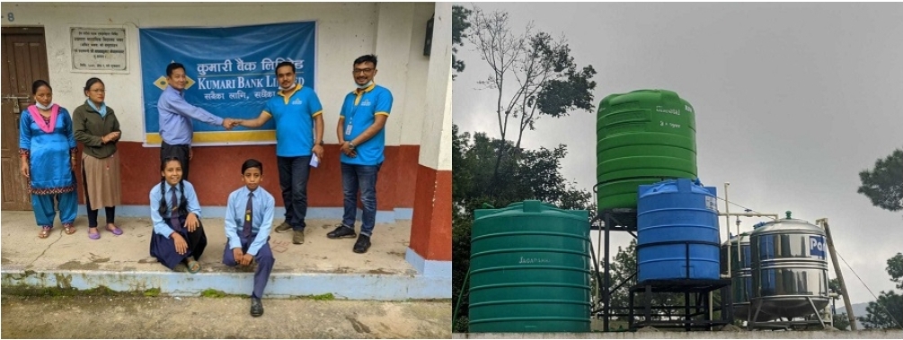 कुमारी बैंक लिमिटेडले साँखु स्थित उग्रतारा माध्यमिक विद्यालयमा खानेपानी फिल्ट्रेसन प्रणाली जडान गरेको छ ।अत्यावश्यक भौतिक पूर्वाधारको अभावमा प्रभावकारी पठनपाठन हुननसक्ने भएकाले फिल्ट्रेसन प्रणाली जडान गरिदिएको छ ।