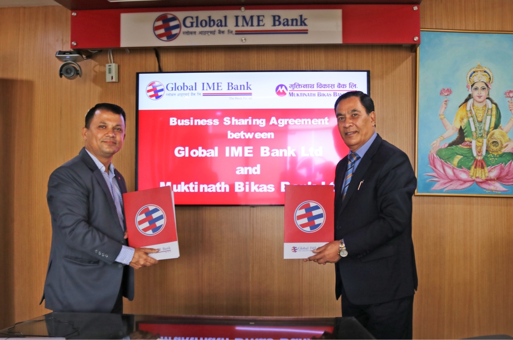ग्लोबल आइएमई बैंक र मुक्तिनाथ विकास बैंकबीच मुक्तिनाथ विकास बैंकका ग्राहकहरुलाई आवश्यक पर्ने गैर कोषमा आधारित बंैकिङ्ग सुविधा उपलब्ध गराउन समझदारी पत्रमा हस्ताक्षर भएको छ ।