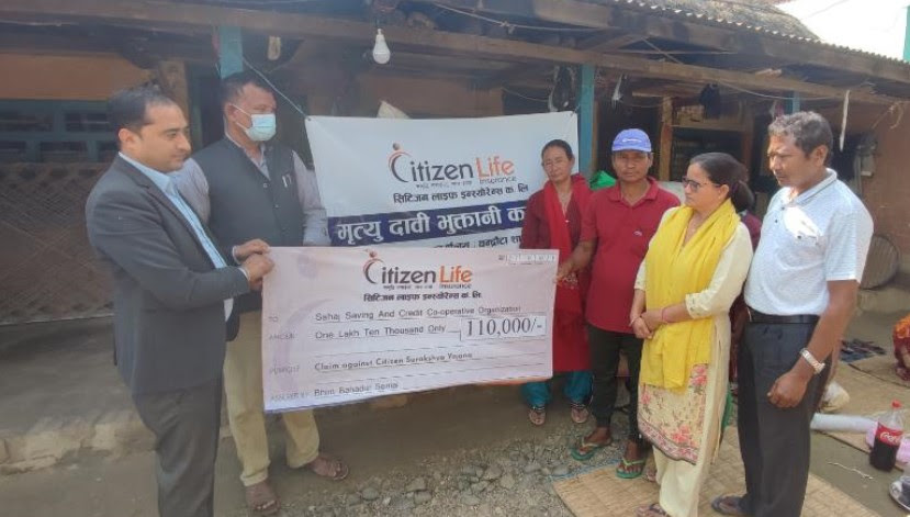 कम्पनीले उक्त रकम सहकारीका सचिव , कम्पनीका चन्द्रौटा शाखा प्रबन्धक , सहकारीका व्यवस्थापक ,सचिव र सदस्य लगायतको उपस्थितिमा जनप्रतिनिधि राम बहादुर चौधरी र सिटिजन लाइफका क्षेत्रिय शाखा प्रबन्धक लक्ष्मन मरासिनीले बीमित लिला सोमैको हकवाला भिम बहादुर सोमैलाई हस्तान्तरण गरेका हुन्