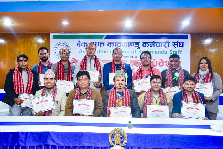 बैंक अफ काठमाण्डु कर्मचारी संघको तेस्रो केन्द्रिय महाधिवेशन सम्पन्न भएको छ । महाधिवेशनबाट अध्यक्षमा अरुण श्रेष्ठ, उपाध्यक्षमा समेन्द्र केसी, महासचिवमा निलराज घिमिरे, सचिमा धिरेन्द्र शाह र कोषाध्यक्षमा मेघनाथ भण्डारी सर्वसम्मत चयन भएका छन् भने ८ जना जना सदस्य सहित १३ सदस्यीय केन्द्रिय समिति नै सर्वसहमतिका साथ निर्वाचित भएका हुन् ।