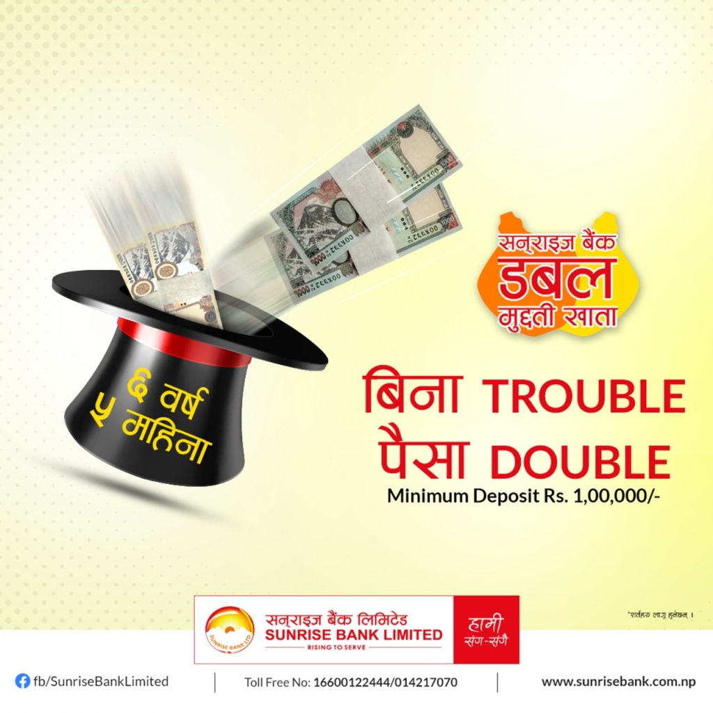 सन्राइज बैंकले सन्राइज दोब्बर मुद्दती योजना ल्याएको छ ।