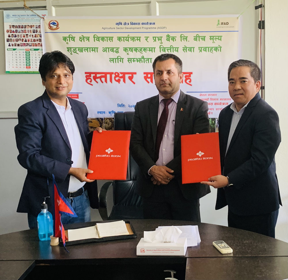 कृषि क्षेत्र विकास कार्यक्रम (ASDP) र प्रभु बैंकबीच मूल्य शृङ्खलामा आवद्ध कृषकहरुमा वित्तीय सेवा प्रवाहको लागि सम्झौता पत्रमा हस्ताक्षर भएको छ ।