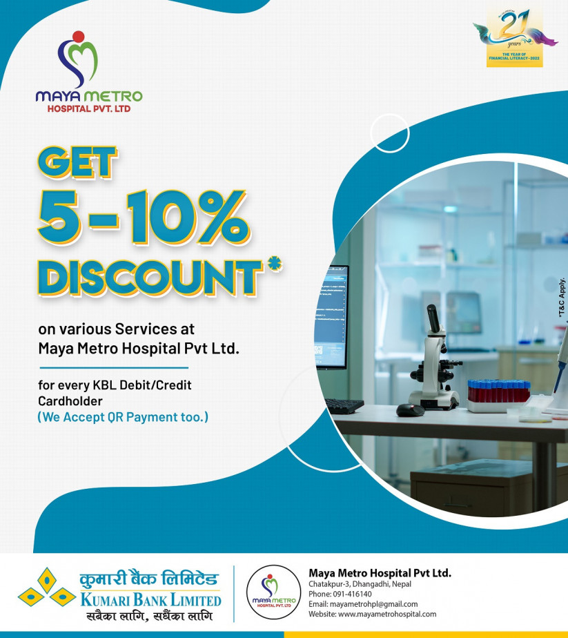 कुमारी बैंक लिमिटेड र कैलालीको धनगढीस्थत माया मेट्रो अस्पतालबीच छुट सम्झौता भएको छ।