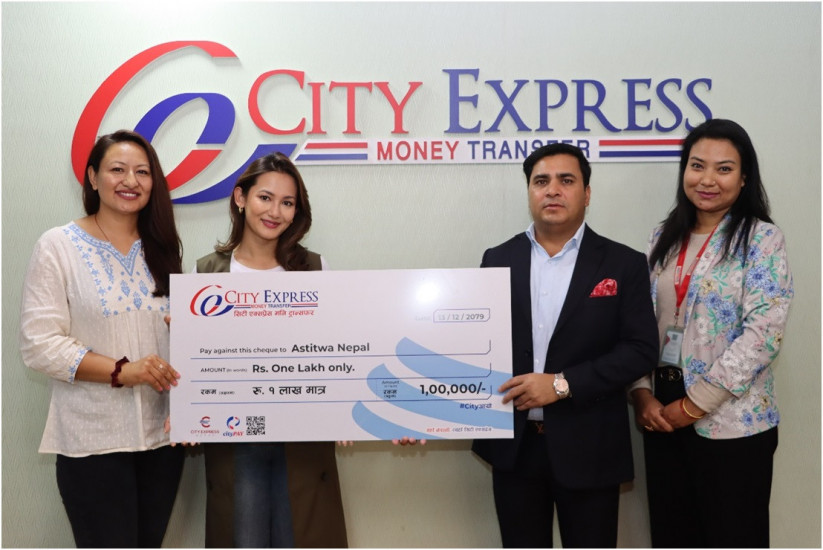 सिटी एक्सप्रेस मनी ट्रान्सफरद्वारा सामाजिक उत्तरदायित्वअन्तर्गत अस्तित्व नेपाल फाउन्डेसनलाई रु. १ लाख रकम सहयोग गरेको छ।