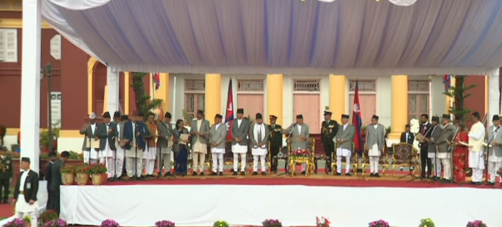 यसअघि प्रधानमन्त्री ओलीसहित उपप्रधान तथा सहरी विकास मन्त्री प्रकाशमान सिंह र उपप्रधान तथा अर्थमन्त्री बनेका विष्णु पौडेलले शपथ लिएका थिए ।