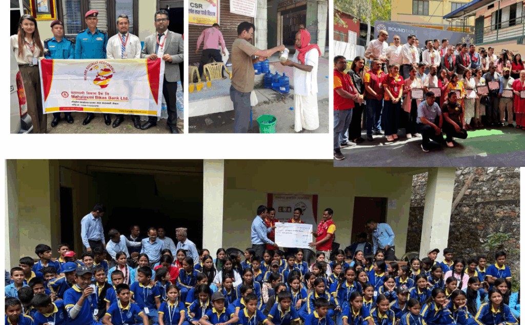 महालक्ष्मी विकास बैंकले वित्तीय साक्षरता, शिक्षा, स्वास्थ्य, दैवी प्रकोप व्यवस्थापन, वातावरण संरक्षण, सांस्कृतिक प्रबद्र्धन, पुर्वाधार निर्माण/सुधार, दिगो विकास लक्ष्य, मानव सेवा तथा परोपकार कार्य जस्ता विभिन्न क्षेत्रहरुमा संस्थागत सामाजिक उत्तरदायित्व अन्तर्गत कार्यक्रम सञ्चालन गर्ने नीति अनुरुप बैंकले आर्थिक वर्ष २०८१÷८२ को चौथो त्रैमासमा विभिन्न्न कार्यक्रमहरु सम्पन्न गरेको छ ।