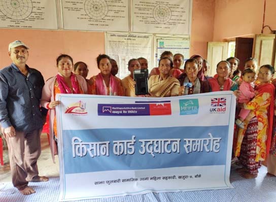 पहिलो चरणमा हेफर ईन्टरनेशनल नेपालसंग आबद्घ बाँके जिल्लाको खजुरा गा.पा.मा अवस्थित साझा फुलबारी उद्यमी महिला सहकारीका कृषकहरुलाई उक्त कार्ड प्रदान गरि सेवाको सुरुवात गरिएको छ । सो कृषि कर्जाको आवेदन तथा स्विकृति प्रकिृया बैंकले के्रडिट स्कोरिङ मोडेलबाट सरल तरिकाले गर्नेछ । उक्त किसान कार्ड मार्पmत कृषकहरुले माछापुच्छ«े बैंकको शाखारहित बैंकिङ्ग सेवा मार्फत आफ्नो कार्डमा उपलब्ध सिमा भित्र रहने गरी कारोबार गर्न सक्नेछन् ।