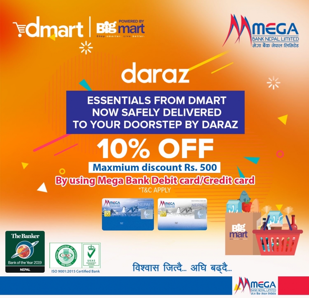 लकडाउनको विशेष परिस्थितिलाई ध्यानमा राख्दै मेगा बैंक र दराज डटकमबीच मेगा बैंकका ग्राहकहरुलाई सहज र सुरक्षित रुपमा घरमै सामान पुर्याउने सम्झौता भएको हो । सम्झौताअनुसार, मेगा बैंकका डेबिट तथा क्रेडिट कार्ड प्रयोगकर्ता ग्राहकहरुले दराजबाट सामान खरिदमा १० प्रतिशत छुट पाउने छन् । डिजिटल बैंकिङ अन्तरगत नगदबिहीन कारोबारलाई बढवा दिने सरकारको नीतिलाई प्राथमिकतामा राखी मेगा बैंकले दराजसँग सम्झौता गरेको हो ।