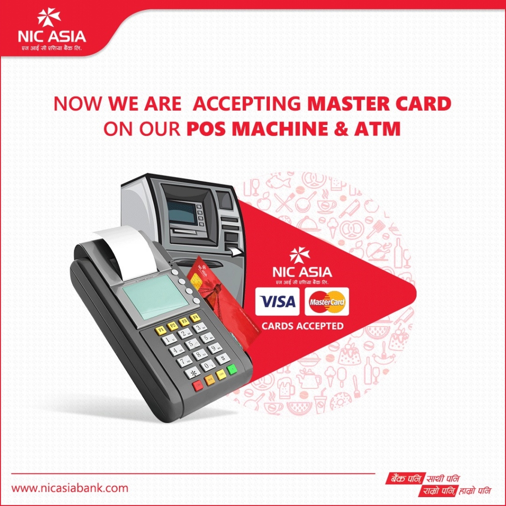 एन आई सी एशिया बैंकको पीओएस टर्मिनल र एटिएमहरूमा अब मास्टरकार्डको डेबिट तथा क्रेडिट कार्यहरू प्रयोग गर्न सकिने
