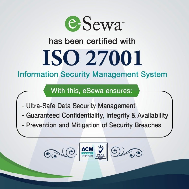 नेपालको पहिलो भुक्तानी सेवा प्रदायक इसेवाले आइएसओ २७००१ः२०१३ प्रमाणपत्र प्राप्त गरेको छ । आइएसओ प्रमाणपत्र प्राप्त भएसँगै एक दशक भन्दा लामो समयदेखि मोबाईल तथा इन्टरनेटको माध्यमबाट भुक्तानी गर्न सकिने सेवा दिँदै आएको इसेवाका सेवा र यसले प्रयोग गर्ने प्राविधिक संरचना गुणस्तरिय, सुरक्षित र विश्वस्तरिय छन् भन्ने कुराको पुष्टि गरेको छ ।