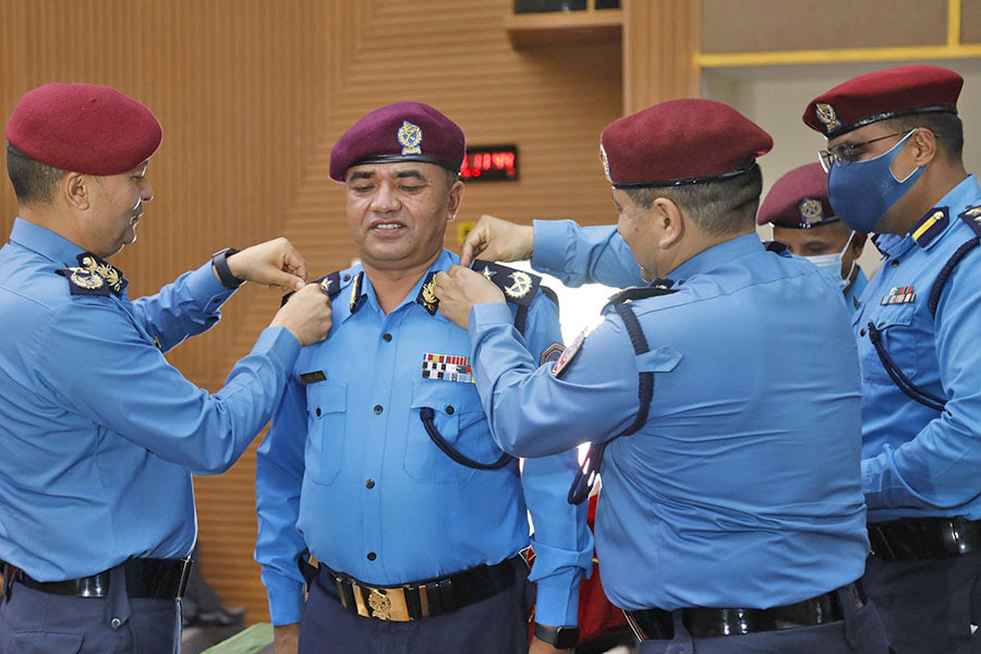 प्रहरी अतिरिक्त महानिरीक्षक(एआईजी)मा बढुवा भएका सहकुल बहादुर थापा दर्ज्यानी चिन्ह प्रदान गरिएको छ ।