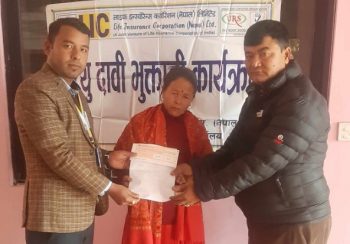 उक्त दाबी रकम मृतकको श्रीमति रचनामैया प्रजापतिलाई कम्पनीका वरिष्ठ नायव महाप्रबन्धक दिपेश बाबु तिवारीले हस्तान्तरण गरेका हुन् । कम्पनीका वरिष्ठ नायव महाप्रबन्धक तिवारीले दाबी भुक्तानी सयमयमा नै गर्नु कम्पनीको दायित्व भएको हुँदा दाबी भुक्तानी यताशिघ्र गर्ने कम्पनीको नीति अनुरुप दाबी दिएको जनाए ।