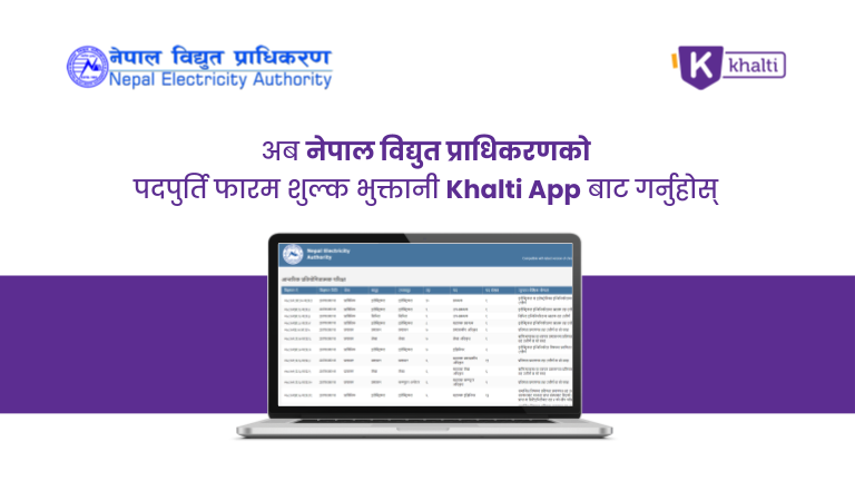 अनलाइन भुक्तानी सेवा प्रदायक कम्पनी, खल्ती डिजिटल वालेट ले नेपाल विद्युत प्राधिकरणले विभिन्न पदका लागि माग गरेको आवेदनको फारम शुल्क खल्ती बाट सजिलै तिर्र्न सकिने सुविधा संचालनमा ल्याएको छ ।