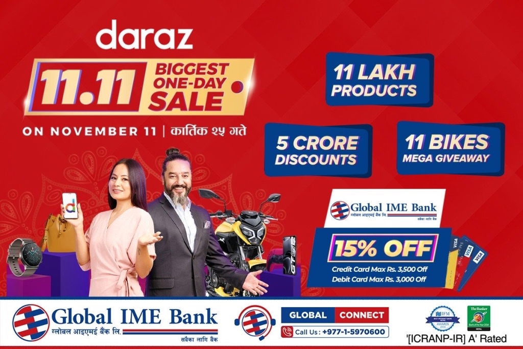 ग्लोबल आइएमई बैंकका ग्राहकलाई दराज ११:११ मा १५% छुट, क्रेडिट कार्ड भुक्तानीमा ३५०० छुट