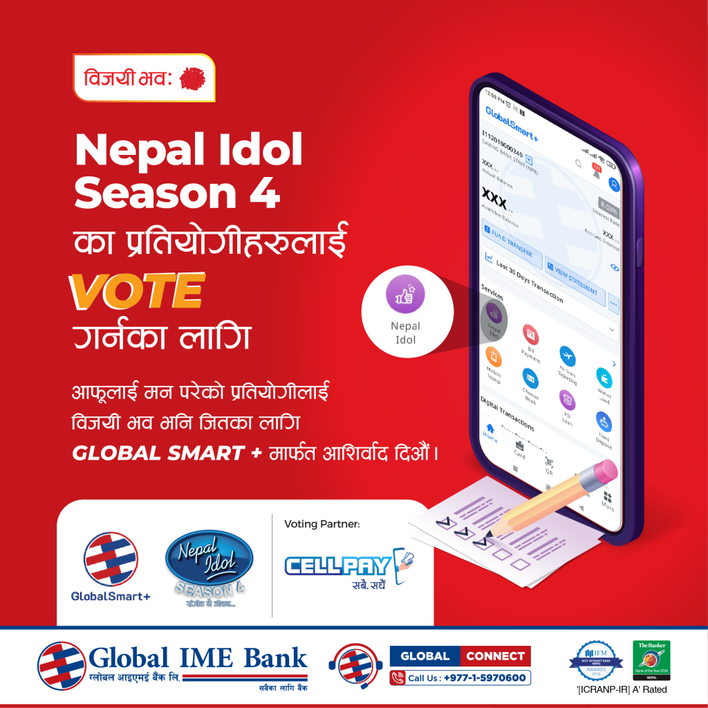 ग्लोबल आइएमई बैंकको मोबाइल एप “ग्लोबल स्मार्ट प्लस” मार्फत नेपाल आइडलमा भोटिङ गर्न सकिने