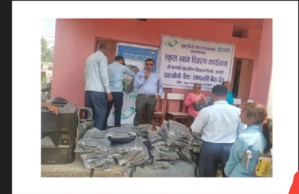 एनएमबि बैंकले विद्यार्थिहरुलाई स्कुल झोला वितरण गरेको छ । बैंकले सामाजिक दायित्व अन्तर्गत पुकु दिदी फाउण्डेशन र वाग्मती मावि, सिसौट सर्लाहीका प्रधानाध्यापक राम सिंहासन रायको उपस्थितिमा उक्त विद्यायलका विद्यार्थीहरुलाई स्कुल झोला वितरण गरिएको हो ।