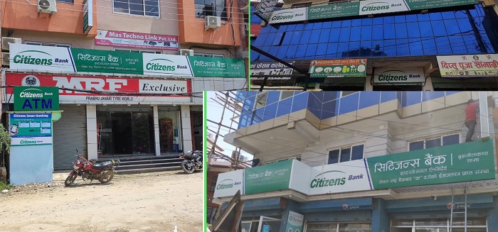 सिटिजन्स बैंक इन्टरनेसनल लिमिटेडले शाखा विस्तार गर्ने क्रममा आफ्नो १७५ औं, १७६ औं तथा १७७ औं शाखा काठमाण्डाैंको ठूलो भयाङ्ग, थली र बुढानिलकण्ठमा गरी थप ३ वटा शाखाहरु संचालनमा ल्याएको छ । यससंगै काठमाण्डांै उपत्यका भित्र यस बैंकको ३२ वटा शाखाहरु संचालनमा रहेका छन् ।