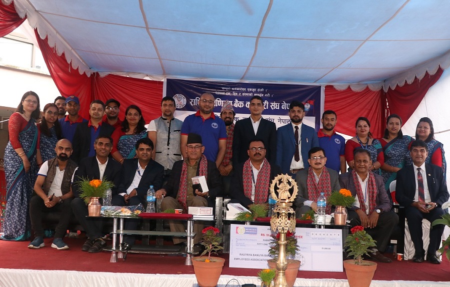 राष्ट्रिय वाणिज्य बैंक कर्मचारी संघ नेपालका का.वा.अध्यक्ष रामप्रसाद जोशीको अध्यक्षतामा सम्पन्न भएको कार्यक्रममा का.वा.अध्यक्ष जोशीले कर्मचारीहरुको तर्फबाट जायज ढङ्गले राखिएका मागहरु व्यवस्थापनले सम्बोधन गर्नुपर्ने बताए । सो कार्यक्रममा पेशागत महासंघ नेपालका अध्यक्ष एवं नेकपा एमालेका केन्द्रीय सदस्य बाबुराम थापाले आफ्नो हक हितको लागि सम्पूर्ण पेसाकर्मीहरु एक हुनुपर्नेे बताए ।