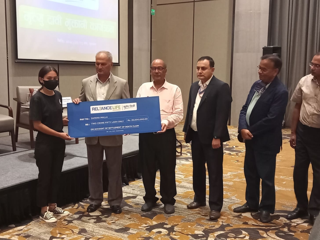 सुनियोजित रुपमा हत्या पछि रिलायन्स लाइफले गरेको दाबी भुक्तानी कार्यक्रममा बीमा समितिका अध्यक्ष सूर्य प्रसाद सिलवाल तथा कार्यकारी निर्देशक राजुरमण पौडेल आफै पुगेका थिए । कम्पनीले २०७८ साउन १३ गते होटल मेरियटमा विशेष कार्यक्रम आयोजना गरेरै सपना मल्ललाई साढे दुई करोड रुपैयाँको चेक हस्तान्तरण गरेको थियो ।