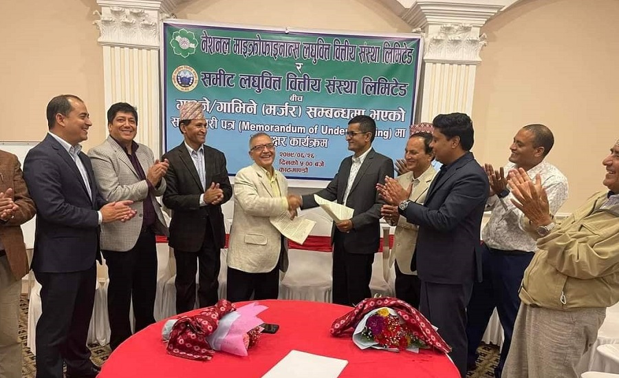 नेशनल माइक्रोफाइनान्स लघुवित्त वित्तीय संस्था लिमिटेड र समीट लघुवित्त वित्तीय संस्था लिमिटेडबीच एकआपसमा गाभ्ने गाभिने (मर्जर) सम्बन्धमा सम्झौता भएको छ । बुधबार यी दुई संस्थाबीच मर्जरका लागि सम्झौता भएको हो ।
