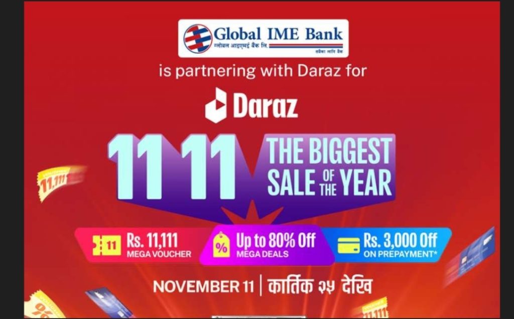 ग्लोबल आइएमई बैंकका ग्राहकहरुले अनलाइन सपिङ्ग प्लेटफर्म दराजले सार्वजनिक गरेको “दराज ११ः११ अफर”मा २० प्रतिशतसम्म छुट पाउने भएका छन् । यस योजनाअन्तर्गत ग्राहकहरुले ग्लोबल आइएमई बैंकको भिषा डेबिट वा क्रेडिट कार्ड प्रयोग गरी दराज अनलाइनमार्फत सामान खरिद गर्दा १५ देखि २० प्रतिशतसम्म छुट पाउने बैंकले जनाएको छ।