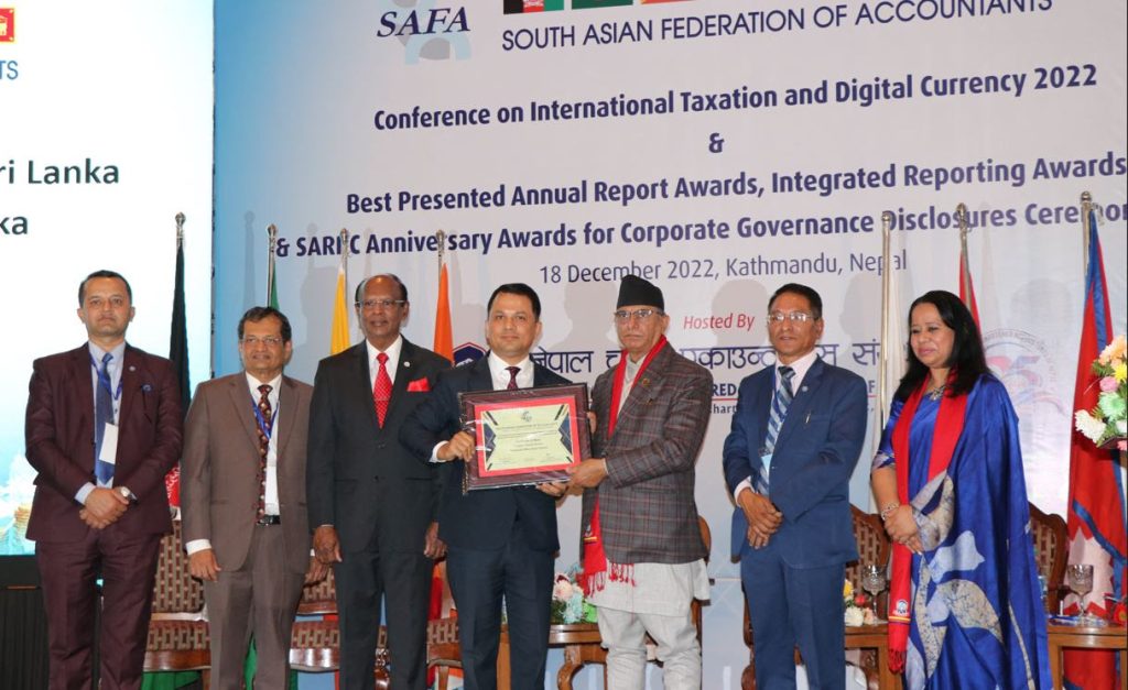दक्षिण एसियन फेडरेसन अफ एकाउन्टेन्ट्सले बेस्ट प्रेजेन्टेड एनुअल रिपोर्ट्स अवार्ड्स २०२१अन्तर्गत बिभिन्न बिधाहरुमा अवार्ड वितरण गरेको थियो।