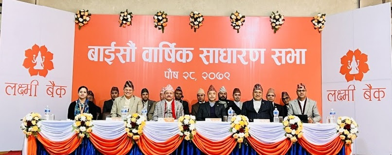 लक्ष्मी बैंक लिमिटेडको बाइसौँ वार्षिक साधारण सभा सम्पन्न भएको छ। आज पौष २८ गते बिहिबार काठमाडौँमा सो सभा सम्पन्न भएको हो।