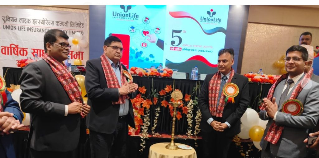 यूनियन लाइफ इन्स्योरेन्स कम्पनीको आज पाँचौ वार्षिक साधारण सभा सम्पन्न भएको छ । उक्त सभा भैरहवामा सम्पन्न भएको कम्पनीले जनाएको छ । यो यूनियन लाइफको अन्तिम साधारण सभा हो । अब गुराँस , प्राइम र यूनिय लाइफ मर्ज भएर एक बन्दैछन् ।
