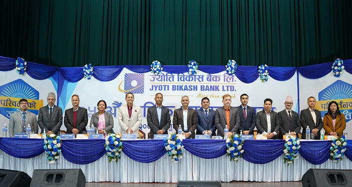 ज्योति विकास बैंकको १५ औं वार्षिक साधारण सभा सम्पन्न भएको छ । सो सभा आइतवार भद्रकालीस्थित त्रिभुवन आर्मी अफिसर्स क्लबमा बैंकका सञ्चालक समितिका अध्यक्ष हरि चन्द्र खड्काको सभापतित्त्वमा सम्पन्न भएको हो । वार्षिक साधारण सभामा अनलाइन –भर्चुअल) प्रविधिमार्फत सहभागी हुने व्यवस्था समेत गरिएको बैंकले जनाएको छ ।