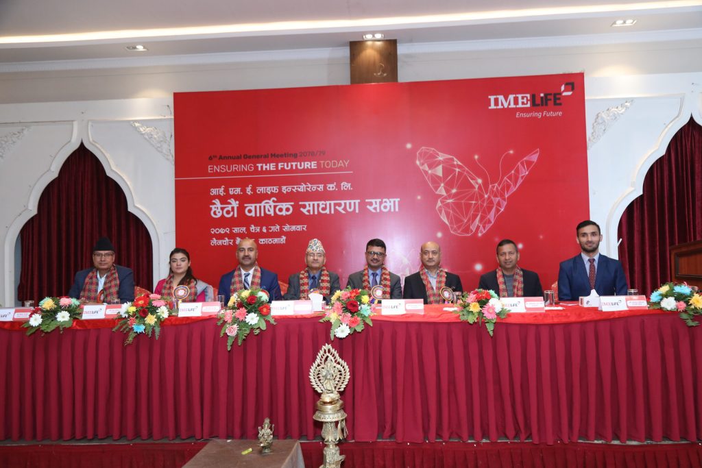 आइएमई लाइफ इन्स्योरेन्स कम्पनीको छैटौं वार्षिक साधारण सभा लैनचौर बैंङक्वेटसमा सम्पन्न भएको छ । सभाले सञ्चालक समितिको तर्फबाट अध्यक्ष डा रामहरि अर्यालले प्रस्तुत गरेकाे आर्थिक वर्ष २०७८/७९ को वार्षिक प्रतिवेदन पारित गरेको छ ।