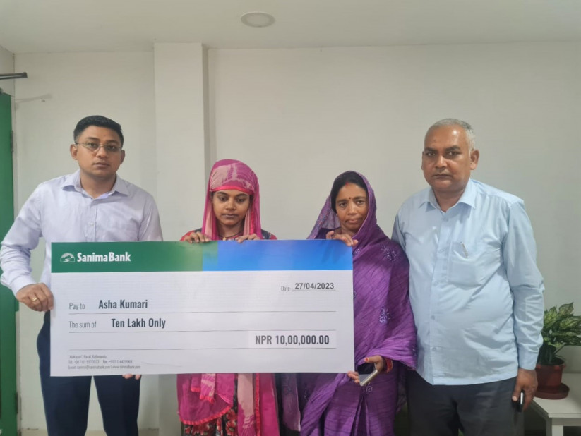 सानिमा बैंकले सानिमा दीर्घायु बचत योजनाअन्तर्गत रु. १० लाखको दुर्घटना बीमा दाबी रकम भुक्तानी गरेको छ।