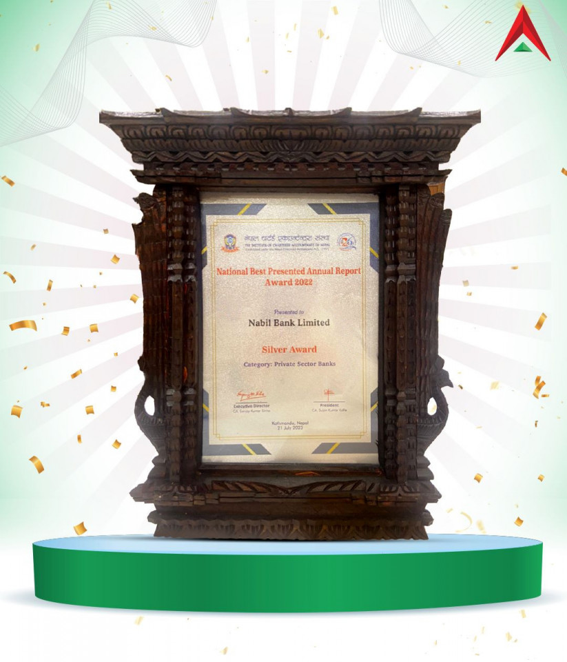 नबिलले बैंकिङ क्षेत्रतर्फको सिल्भर अवार्ड प्राप्त गरेको हो । नेपाल चार्टर्ड एकाउन्टेन्ट्स संस्थाले आर्थिक वर्ष २०२१/२२ को वार्षिक प्रतिवेदनका आधारमा संस्थाको वित्तीय पारदर्शिता, जवाफदेहिता र सुशासनका लागि उक्त अवार्ड प्रदान गरेको हो।