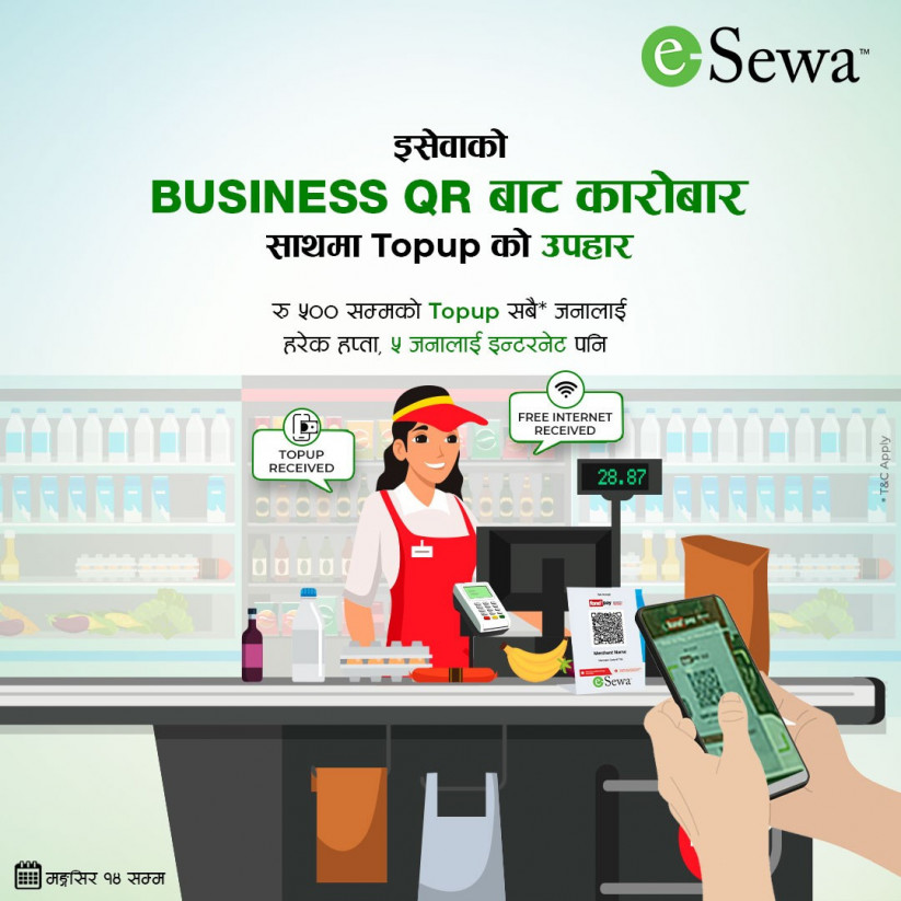 के तपाइँ इसेवा परिवारमा भर्खरै मात्र इसेवा क्यूआर मर्चेन्ट भएर जोडिनुभएको हो ? यदि हो भने इसेवाले तपाइँका लागि आकर्षक उपहारहरु जित्ने एउटा अफर लिएर आएको छ।