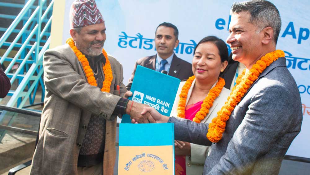 एनएमबि बैंकको मोबाइल बैंकिंग एपबाट हेटौंडा खानेपानीको महशुल तिर्न सकिने भएको छ । बैंकले हेटौंडा खानेपानी व्यवस्थापन बोर्डसंग सम्झौता गरी बैंकको बैंकिंग एप (इएनएमबी एप) प्रयोग गरी हेटौंडा खानेपानीको महशुल बिना कुनै झन्झट घरै बसी अनलाइन तिर्न सक्ने व्यवस्था मिलाएको हो ।