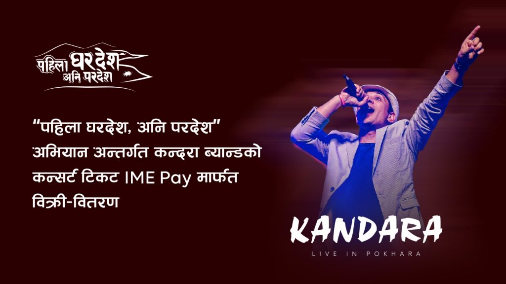 नेपालको पहिलो डिजिटल वालेट आइएमई पे’ कन्दरा साङ्गीतिक ब्यान्डलद्वारा नेपाल सरकारको आन्तरिक पर्यटकीय अभियान “पहिला घरदेश, अनि परदेश” – आन्तरिक पर्यटनको प्रवर्धन” सन्देश लिई नेपालमा ८ स्थानमा सम्पन्न गर्न लागेको कन्सर्टको एकमात्र टिकेटिङ पार्टनर रुपमा रहने भएको छ ।