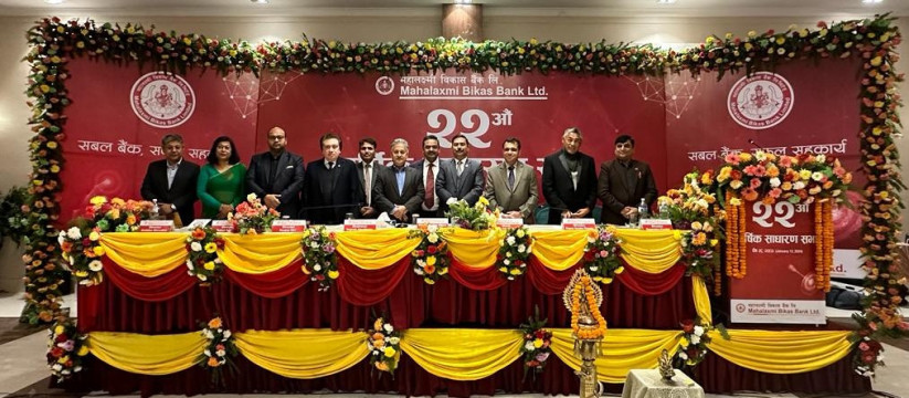 महालक्ष्मी विकास बैंक लिमिटेडकोे बाईसौं वार्षिक साधारणसभा बैंक सञ्चालक समितिका अध्यक्ष राजेश उपाध्यायको अध्यक्षतामा पुस २८ गते शनिवार सम्पन्न भएको छ ।