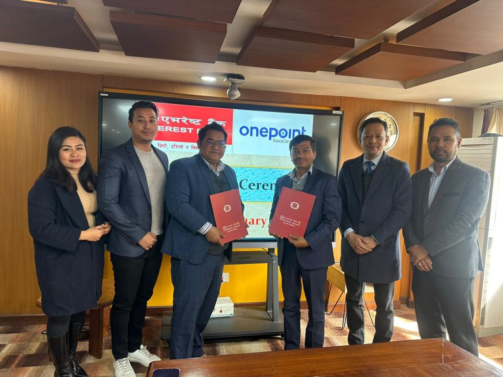 समझदारी पत्रमा एभरेष्ट बैंकका तर्फबाट डेपुटी जनरल म्यानेजर आशुतोष शर्मा र वानप्वाइन्टका प्रमुख कार्यकारी अधिकृत (सीईओ) श्रीप्रताप श्रेष्ठले हस्ताक्षर गरेका छन् ।