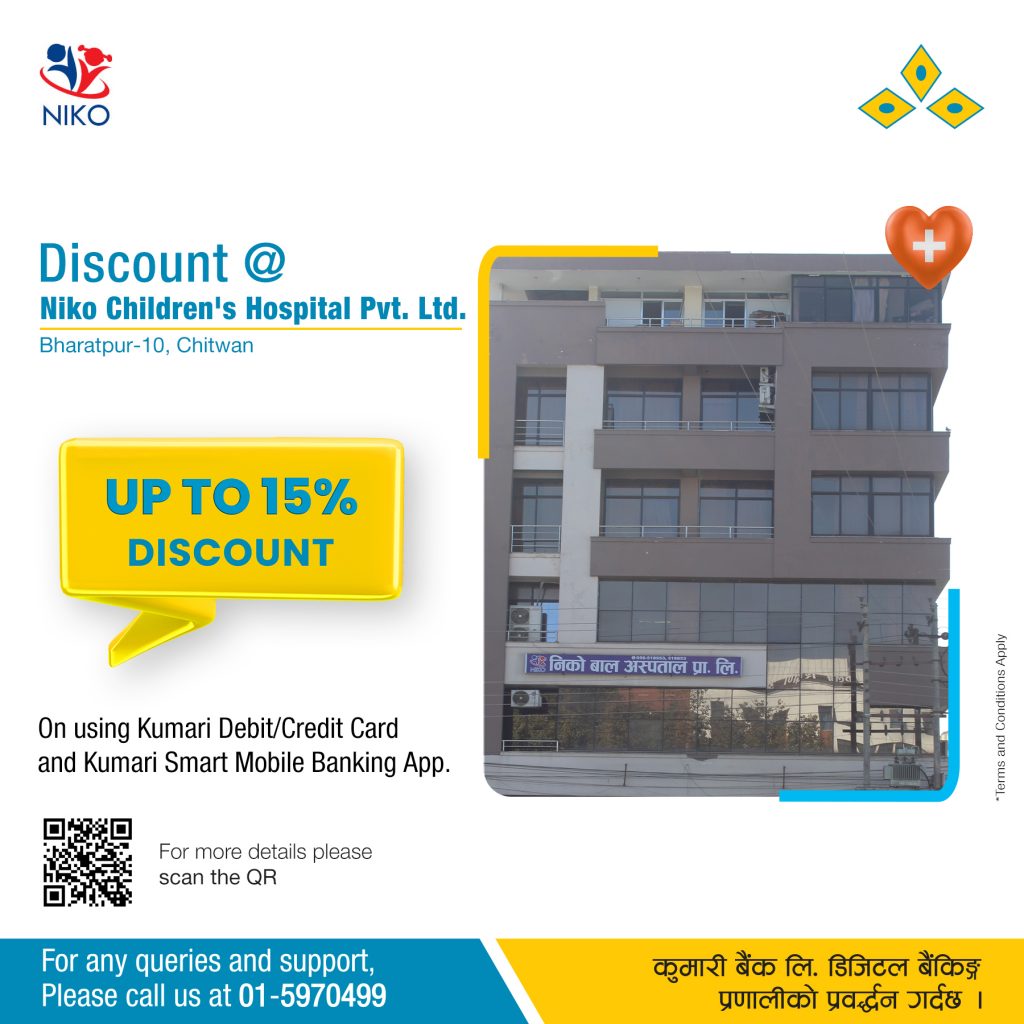 कुमारी बैंक लिमिटेड र भरतपुर, चितवन स्थित निको बाल अस्पतालबीच सम्झौता भएको छ। बैंकका ग्राहकलाई अस्पतालबाट प्रदान गरिने सेवाहरुमा विशेष छुट प्रदान गर्ने समझदारी भएको भएको हो ।