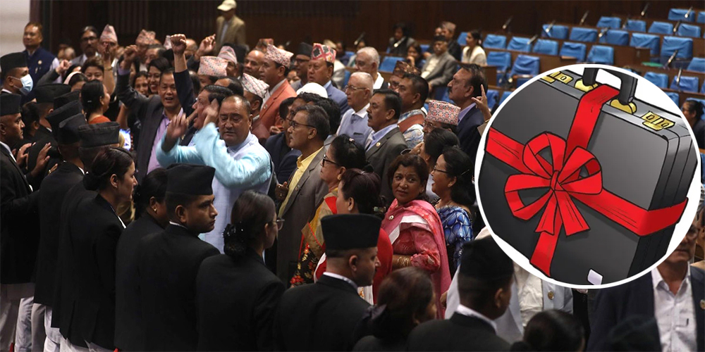 बैठकमा पनि कांग्रेस सांसदहरुले नाराबाजी गरेका थिए । तर, नाराबाजीकै बीच नीति तथा कार्यक्रममा छलफल गरेर पारित गरिएको हो । सहकारी संस्थाको रकम हिनामिना प्रकरणमा मुछिएका उपप्रधान तथा गृहमन्त्री रवि लामिछाने माथि छानबिन गर्न संसदीय समिति गठनको माग गर्दै कांग्रेसले संसदमा अवरोध जारी राखेको छ । तर, सत्ता पक्षले पेलेरै भएपनि मर्यादापालकको सहायतामा अगाडि बढिरहेको छ ।