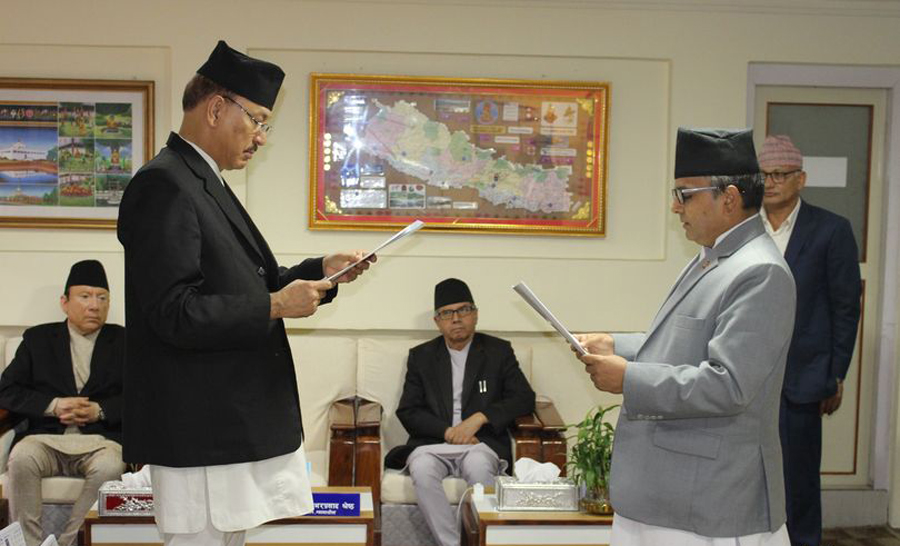अर्थ मन्त्रालयका सचिव डा. रामप्रसाद घिमिरेले प्रधानन्यायाधीश विश्वम्भरप्रसाद श्रेष्ठसमक्ष नेपाल राष्ट्र बैंक सञ्चालक समितिको सदस्यका रुपमा शपथ ग्रहण गरेका छन् ।