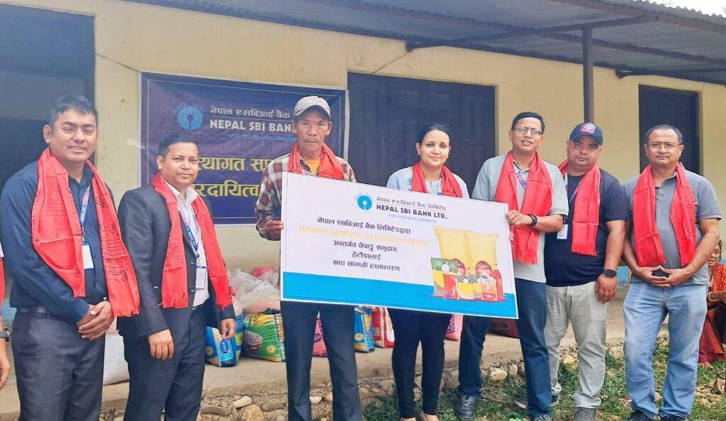 नेपाल एसबिआई बैंकले सामाजिक उत्तरदायित्व कार्यक्रमअन्तर्गत मकवानपुर जिल्लाको हेटौंडा उपमहानगरपालिका वडा नं १४ र १५ का चेपाङ समुदायलाई लक्षित गरी खाद्य सामग्री वितरण गरेको छ ।