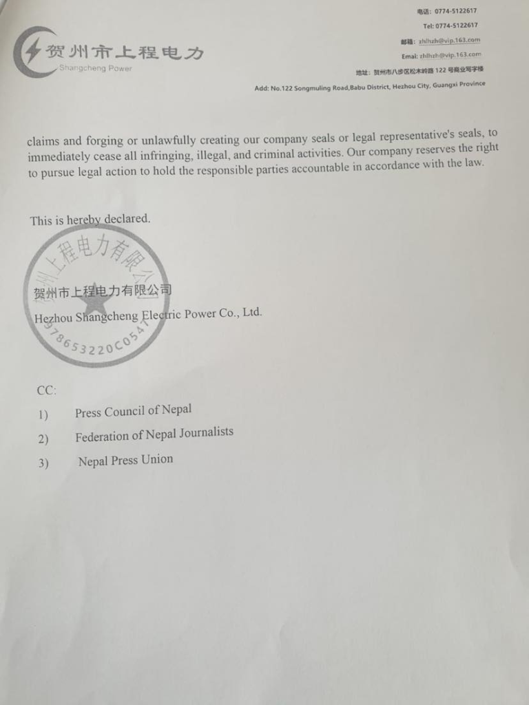 जगदुल्ला जलविद्युत आयोजनाको ठेक्का पार्न चिनियाँ कम्पनी जियाङ्सी कन्स्ट्रक्सन इन्जिनियरिङ कर्पोरेसन(जेसीई)ले फर्जी डकुमेन्ट पेस गरेको पुष्टि भएको छ।